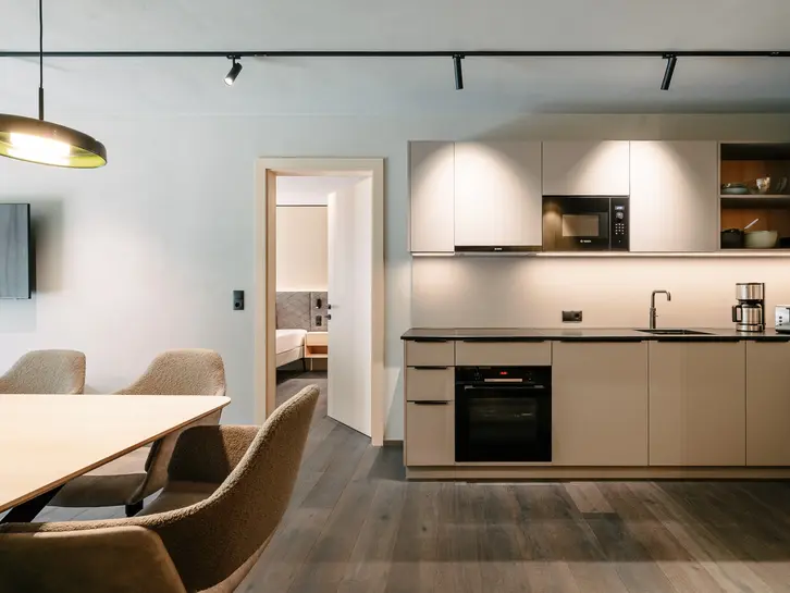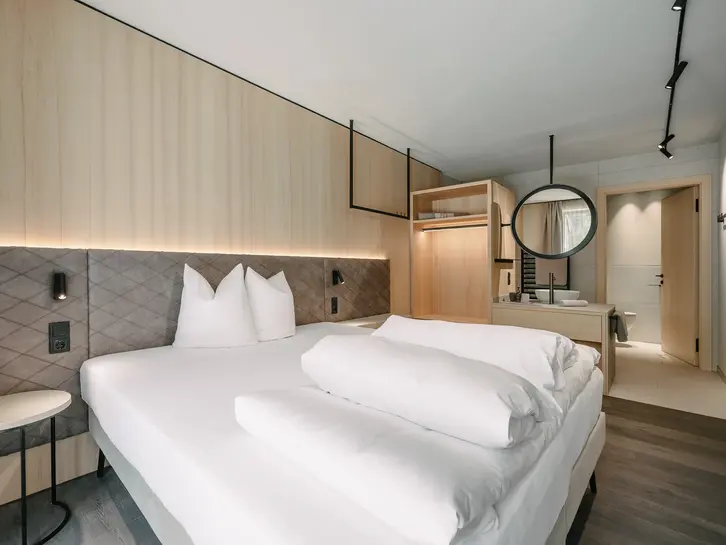 Unsere fünf hochwertigen und bis ins kleinste Detail durchdachten Wohneinheiten bieten dir jede Menge Komfort und maximale Privatsphäre. Stilvolles Design, handgemalte künstlerische Murals an den Wänden, ausgewählte Materialien und der freie Blick nach draußen sorgen dabei überall im Haus für eine ganz besondere Atmosphäre. Das gilt für die einzelnen Appartements mit großzügigen Balkonen oder Terrassen, den chilligen Loungebereich und sogar den top ausgestatteten Ski- und Bikeraum.